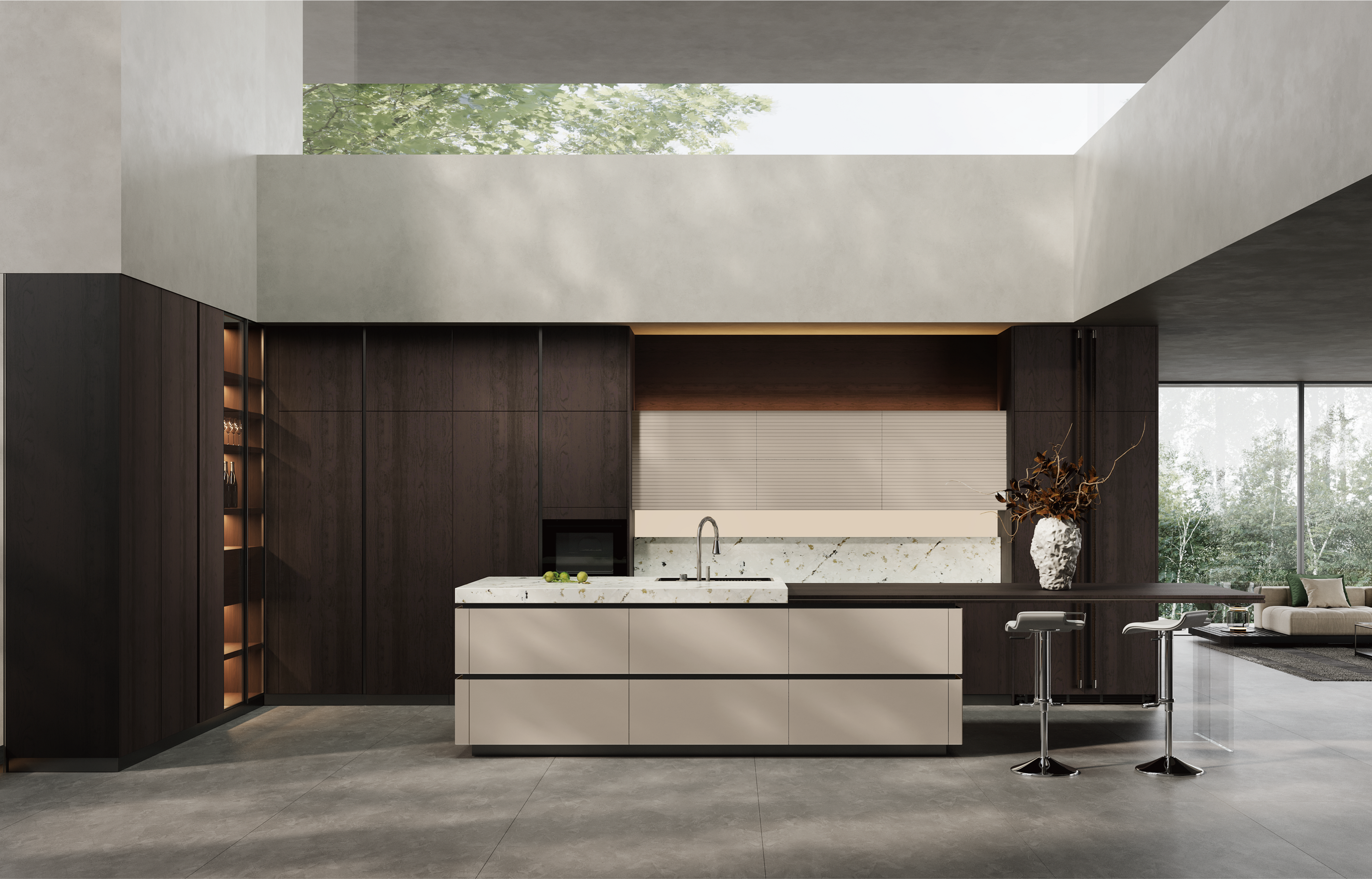 通过mg冰球突破厨柜量体裁柜,定制出适合主厨下厨的烹饪区和洗涤区的舒适高度。